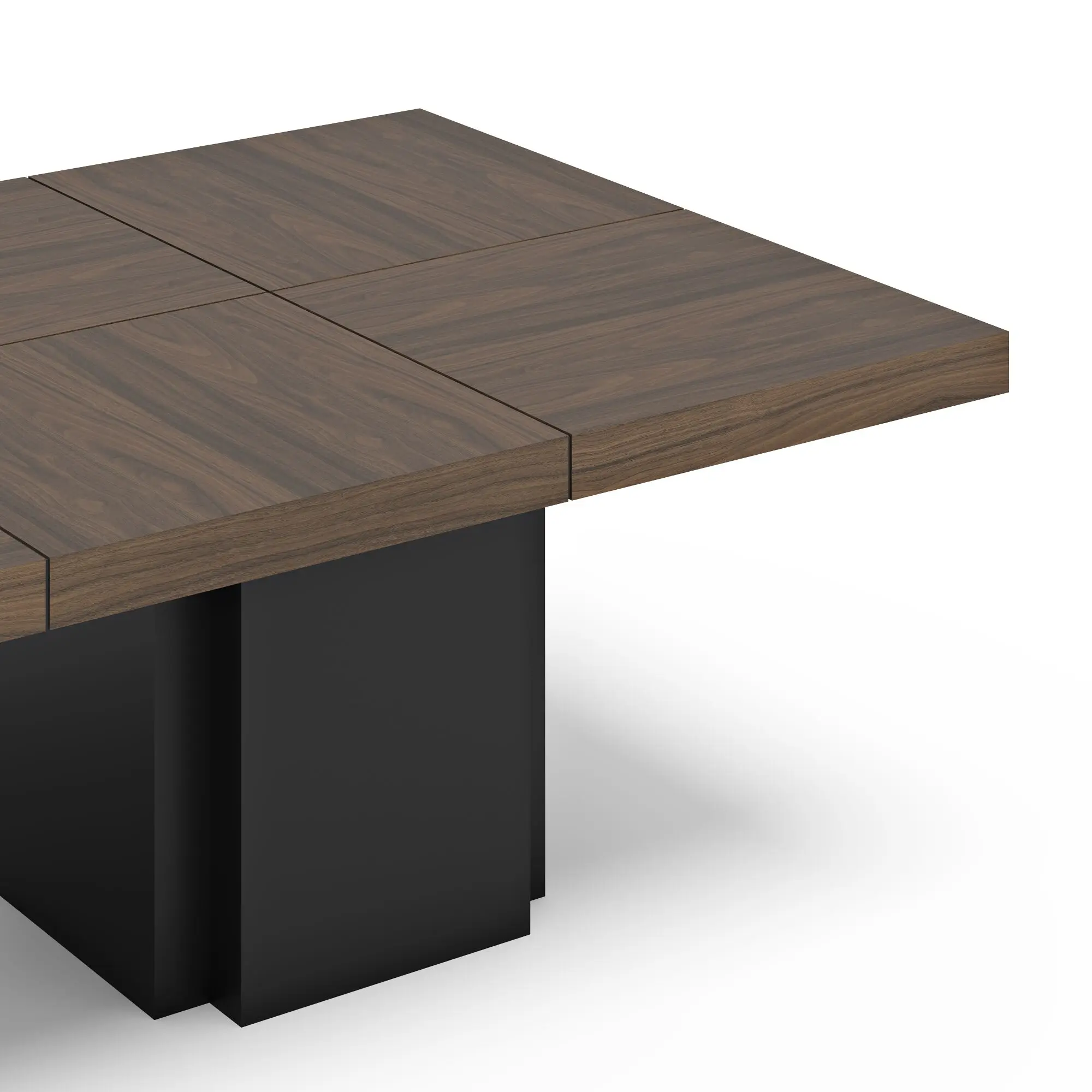 Le plateau, composé de 8 panneaux carrés à assembler, repose sur 2 pieds centraux qui amène stabilité et solidité à la table.